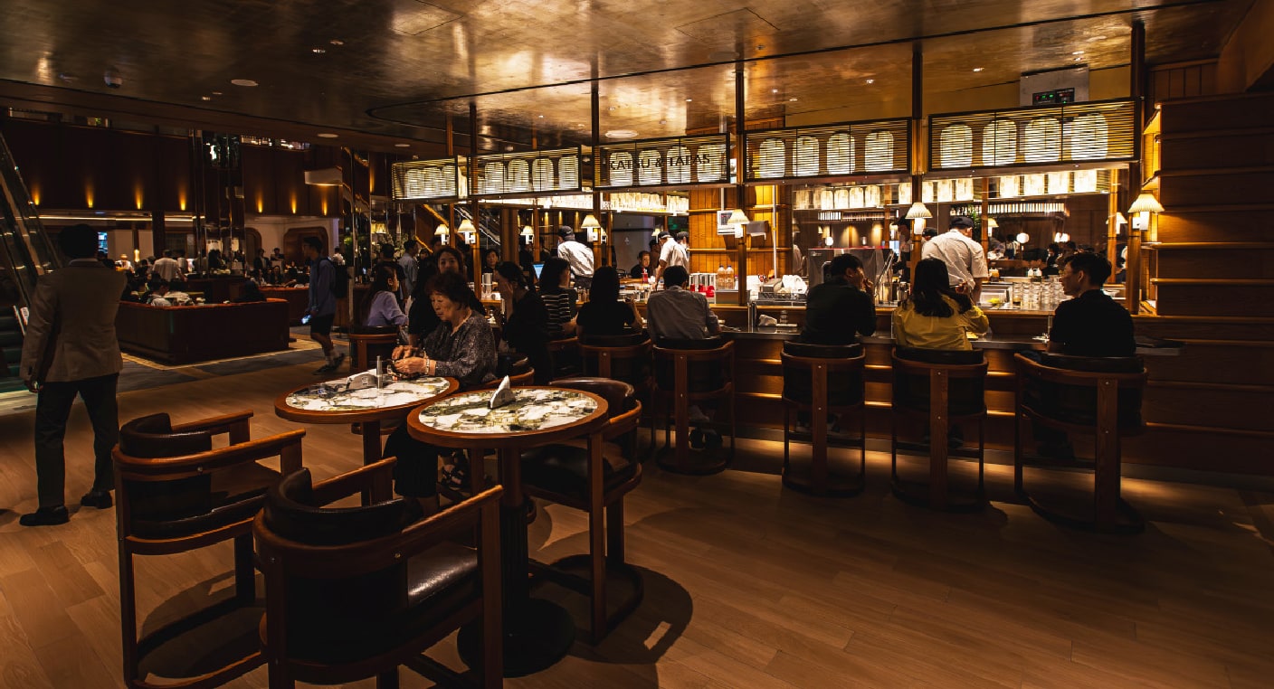 Encircling the central atrium lounge, the vibrant FOOD HALL unfolds across the basement level. A dynamic dining destination where nine restaurants are arranged in refined, frame-like sequences. With extended hours until 10 p.m., it invites guests to linger over dinner, wine and spirits, and conversation.